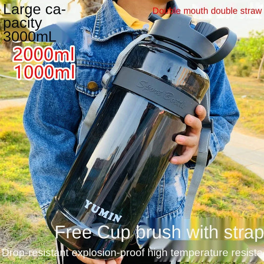 34 oz / 68 oz / 101 oz Large Capacity Water Bottle with Super Large Straw, Portable Plastic Space Cup for Outdoor Sportspacity 1L2L 3L Super Large Straw Cup Portable Dinkware Plastic Space Cup Drink Bottle Outdoor Sports Kettle