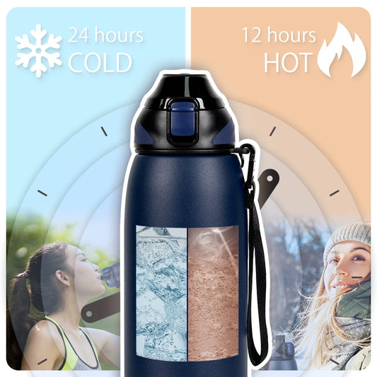 27 oz - 51 oz Portable Thermos with Straw, 304 Stainless Steel Thermal Mug and Tumbler, Sports Vacuum Flask for Hot and Cold Drinks